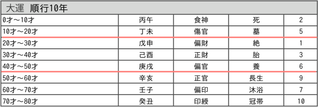 今回、具体的に70歳からの10年間(癸丑 / 印綬 / 冠帯)だとわかって良かったです。