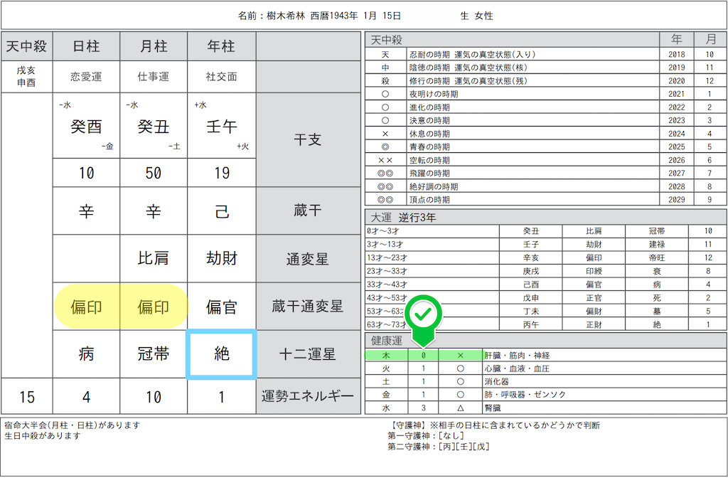 じつは樹木希林さんも、命式の年柱に【絶】があります。