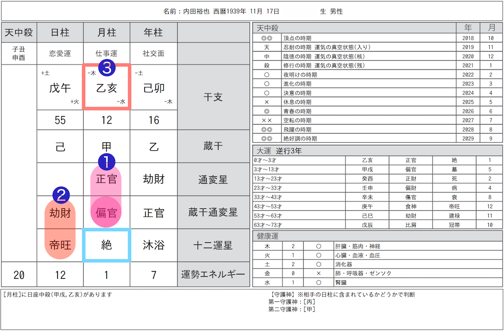 極めつけは❸月柱に日座中殺があることです。