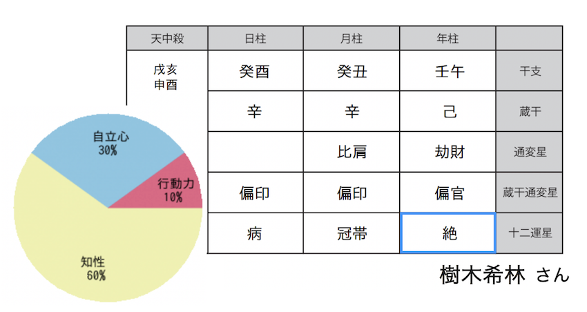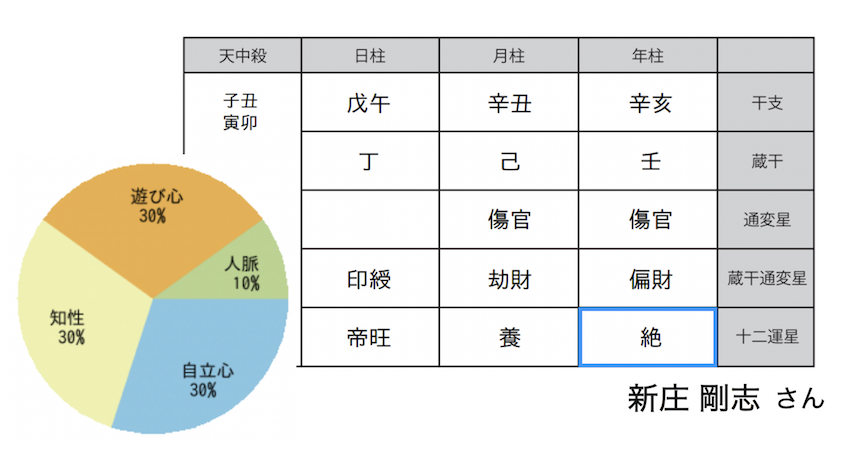 97名分の通変星を集計し、比率を出して取りまとめた命式がこちらです。