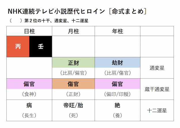 朝ドラの歴代ヒロイン 97名の命式の年柱に十二運星【絶】があるように、芸能人には【絶】を持つ人が多い傾向があります。