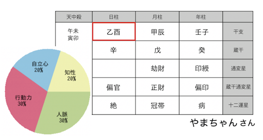 こちらがやまちゃんの命式と通変星のパラメーターです。