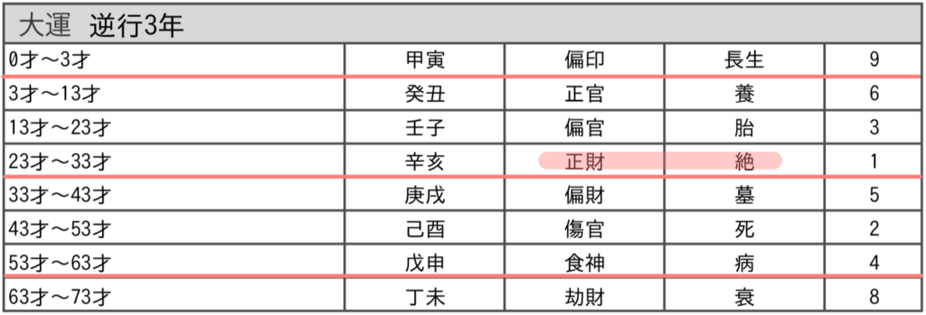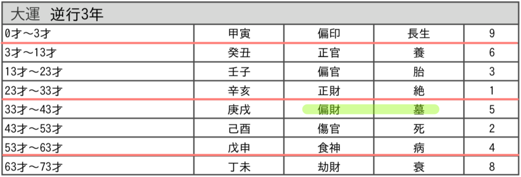 数年後に切り替わる、次の大運(33歳〜43歳)も読んでいきましょう。