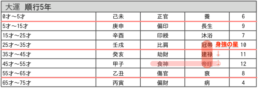 25歳〜55歳までの30年間は、身強の星 が巡り超絶パワフルな運勢でした。
