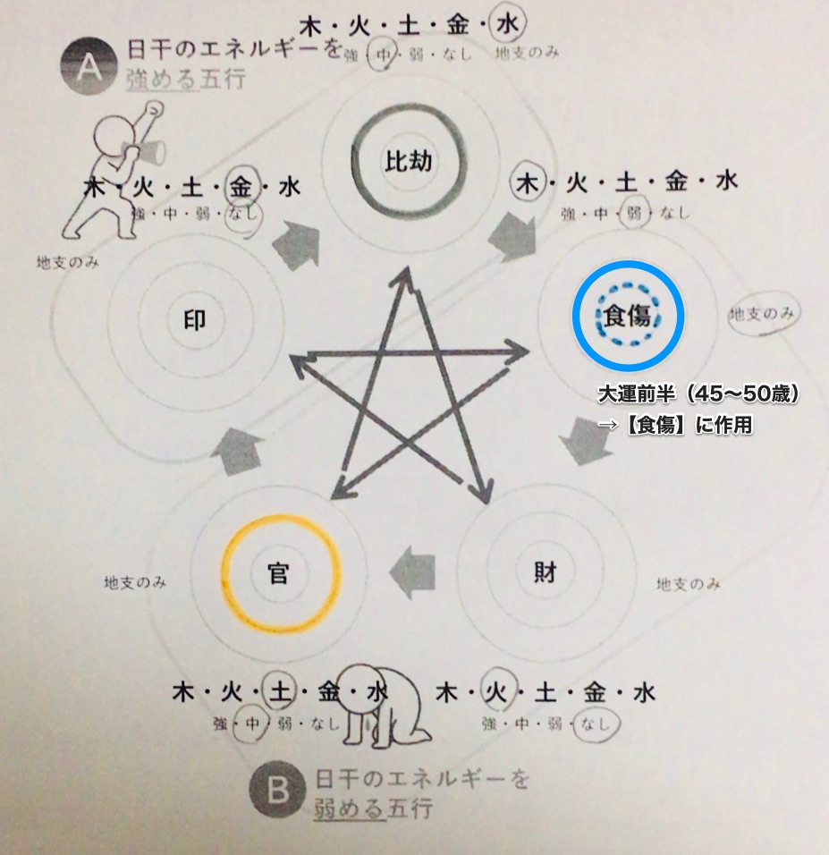 大運の後半は「水の五行(比劫)」に作用が顕れます。