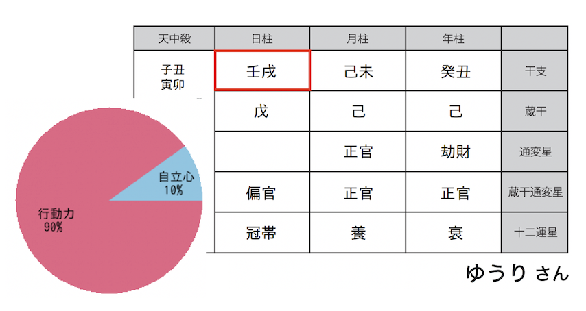 こちらがゆうりさんの命式と通変星のパラメーターです。