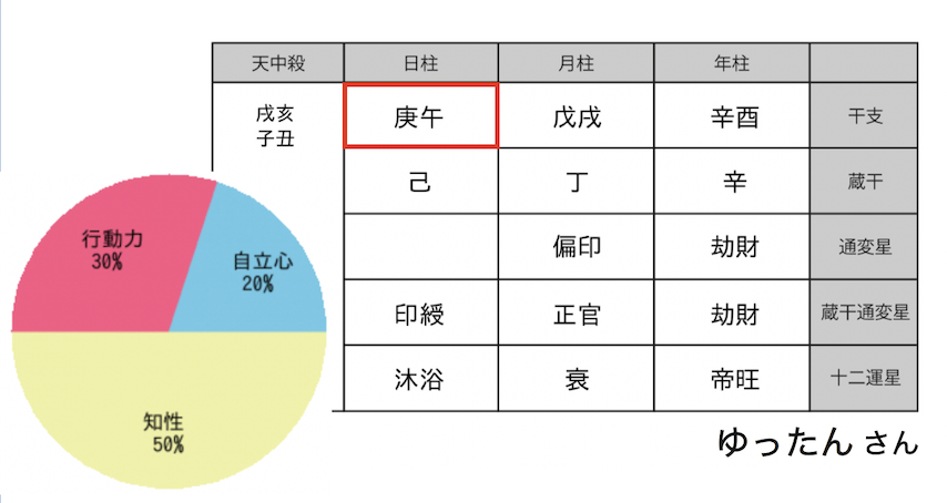 こちらがゆったんさんの命式と通変星のパラメーターです。