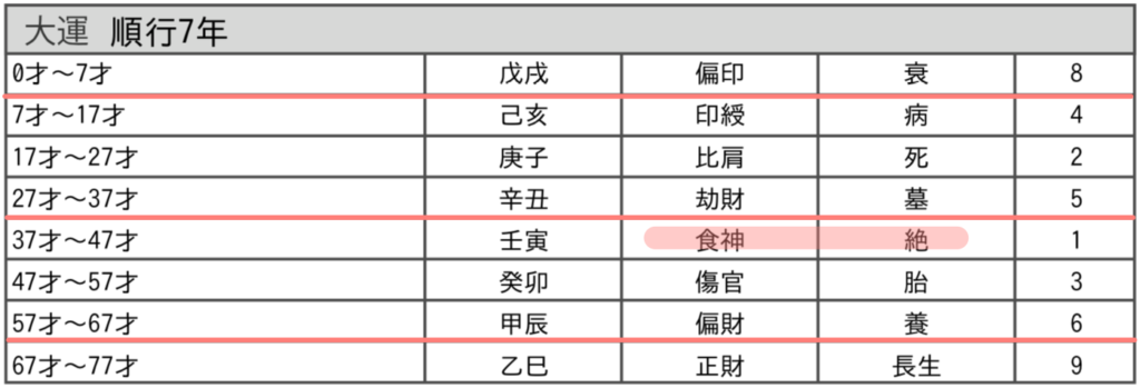 大運【食傷】が37歳〜57歳まで20年続きます。