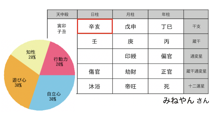 こちらがみねやんさんの命式と通変星のパラメーターです。