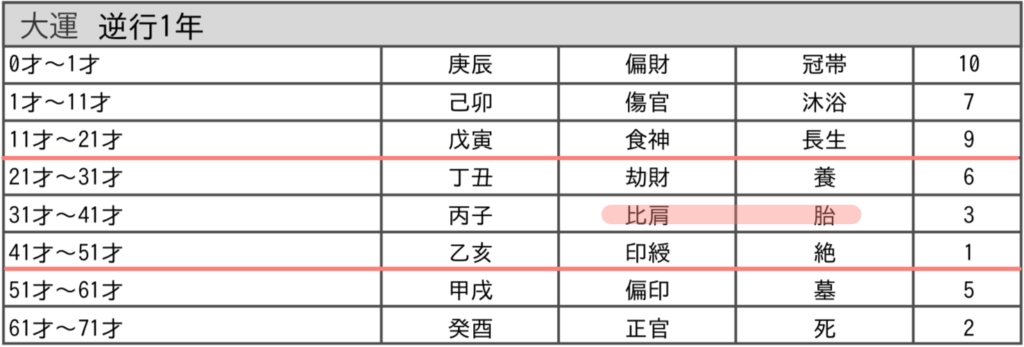 現在の大運は【比肩 / 胎】