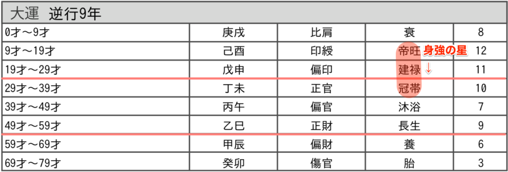 身強の星【建禄(けんろく)】【冠帯(かんたい)】【帝旺(ていおう)】