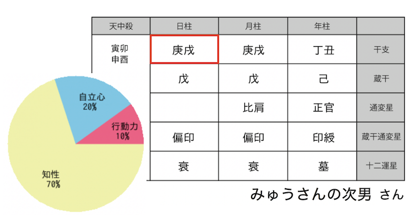 こちらがみゅうさんの次男さんの命式と通変星のパラメーターです。