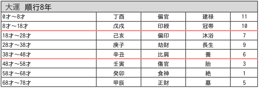 社会運を示す大運(だいうん / たいうん)で見ていきます。