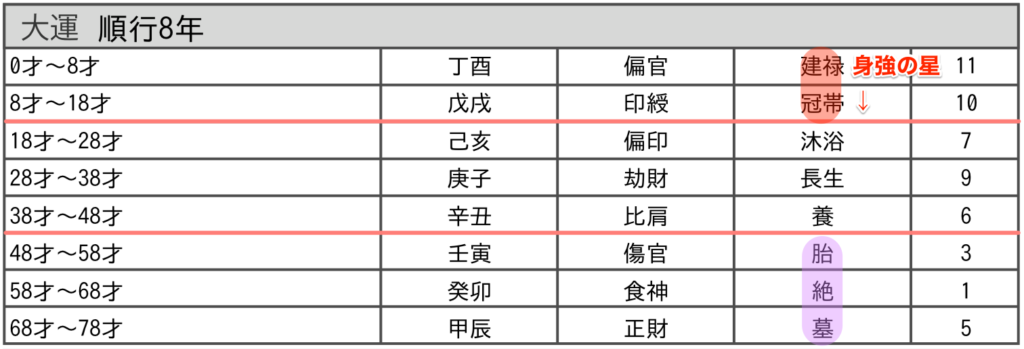 0歳〜18歳までの18年間は、超絶パワフルな運気が巡っていました。
