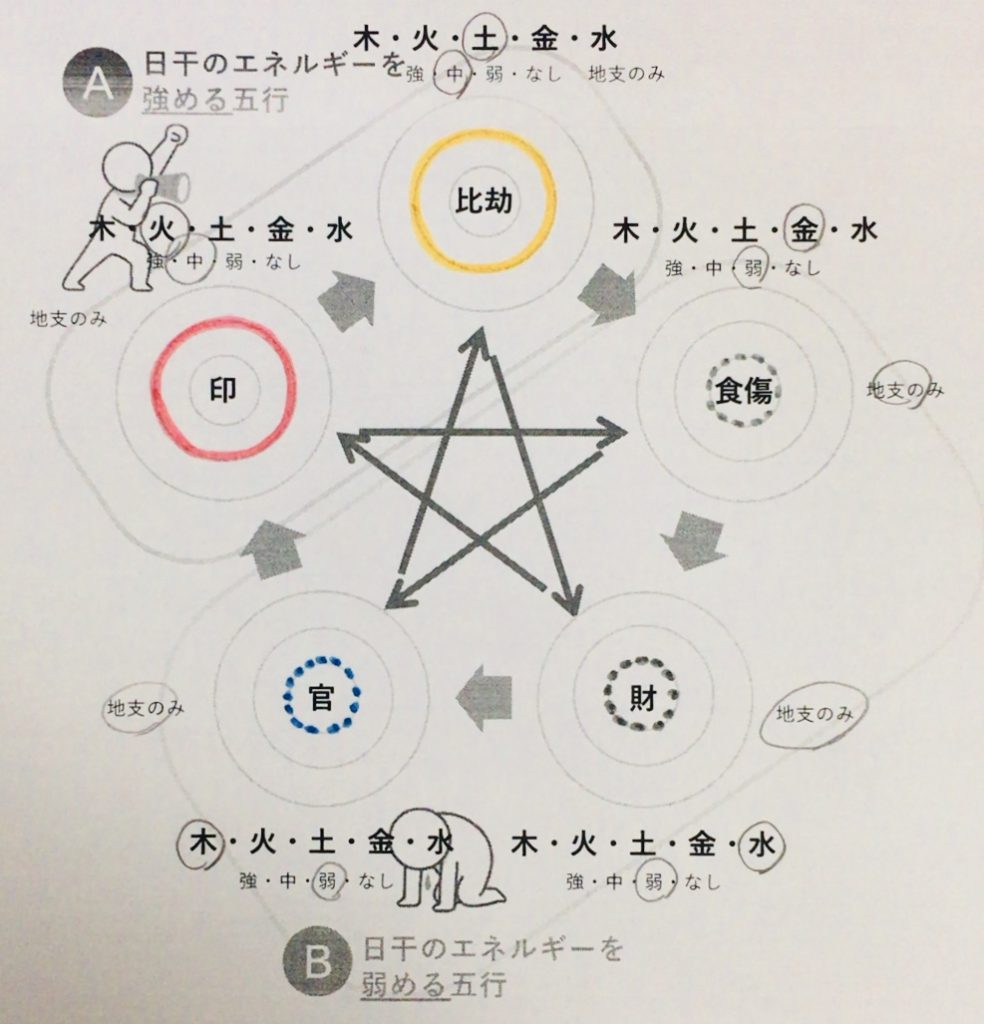 - 【官】は自分にプレシャーをかけて鍛える星、【印】は自分を応援する星という解釈です