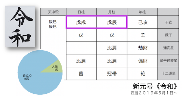 自立星(比肩 / 劫財)ばかりの特殊な命式です。《令和》を生き抜くヒントも書きました