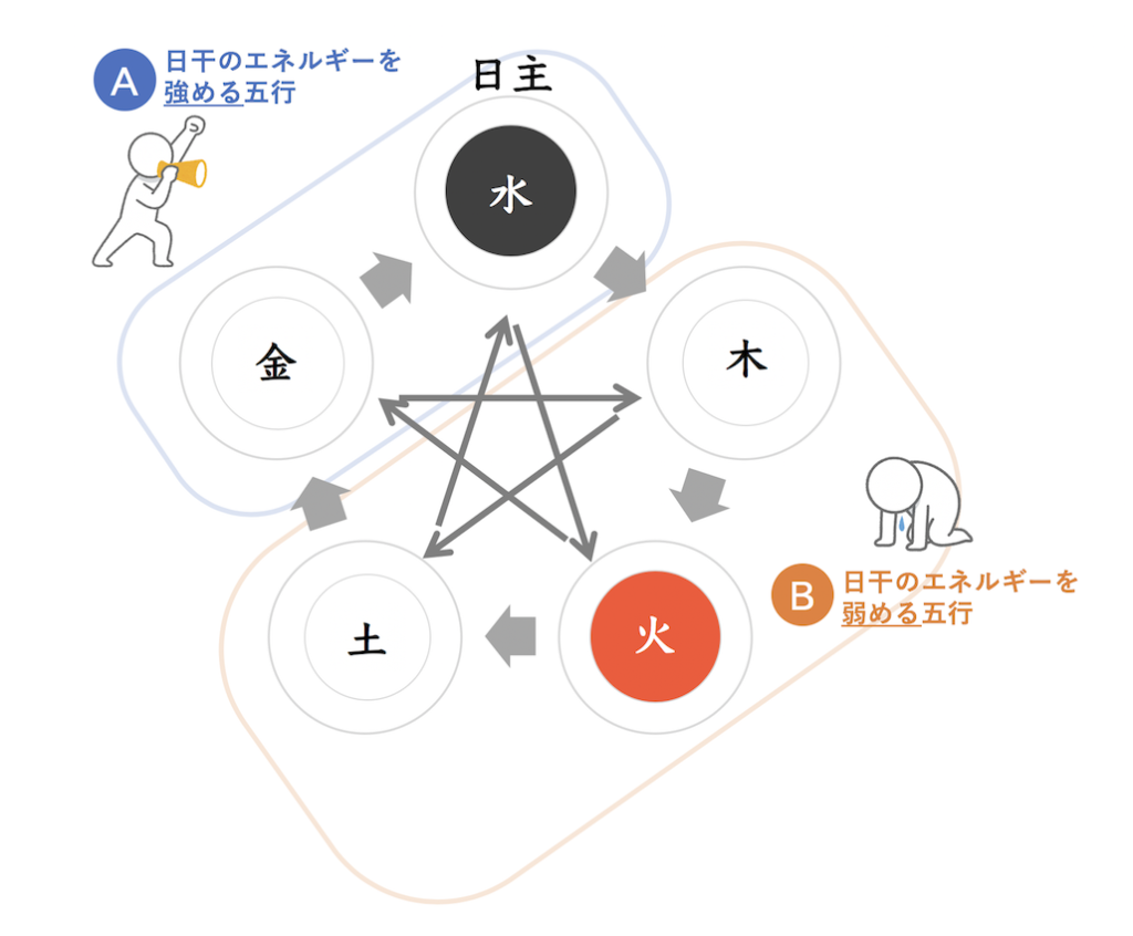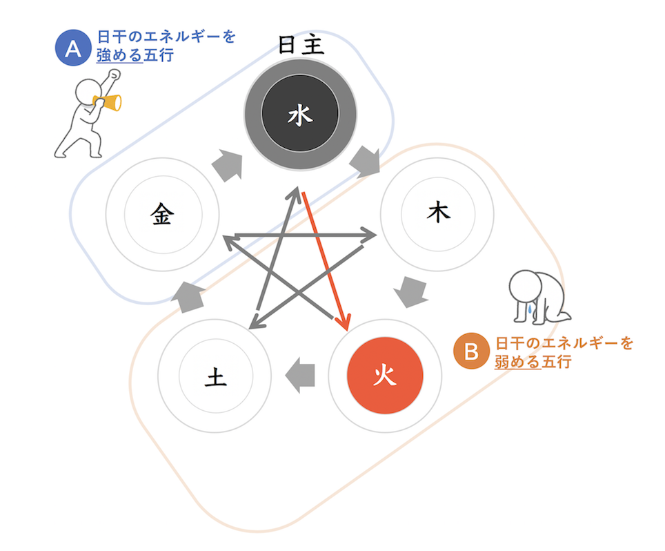 日主:水の五行(壬・癸)の五行バランスを見る図で説明します。
