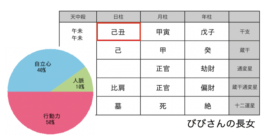 こちらがびびさんの長女さんの命式と通変星のパラメーターです。