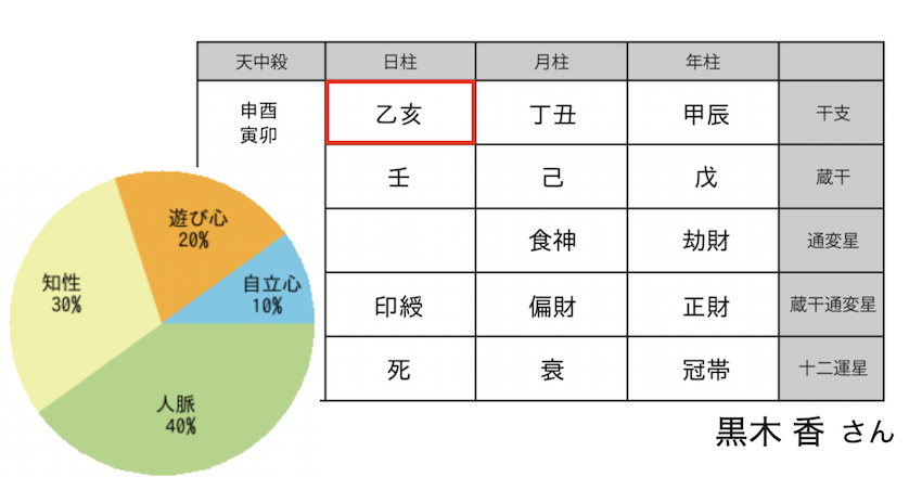 日柱にある干支は、その人の内面性や価値観を表し、四柱推命鑑定の際も重視して読む星です。