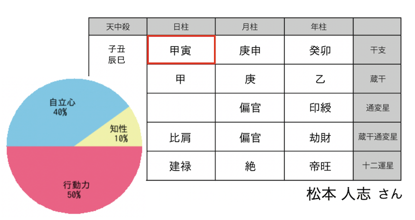 ピコ太郎さんの生みの親、古坂大魔王さんの命式を例にあげてみます。
