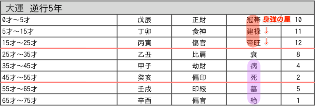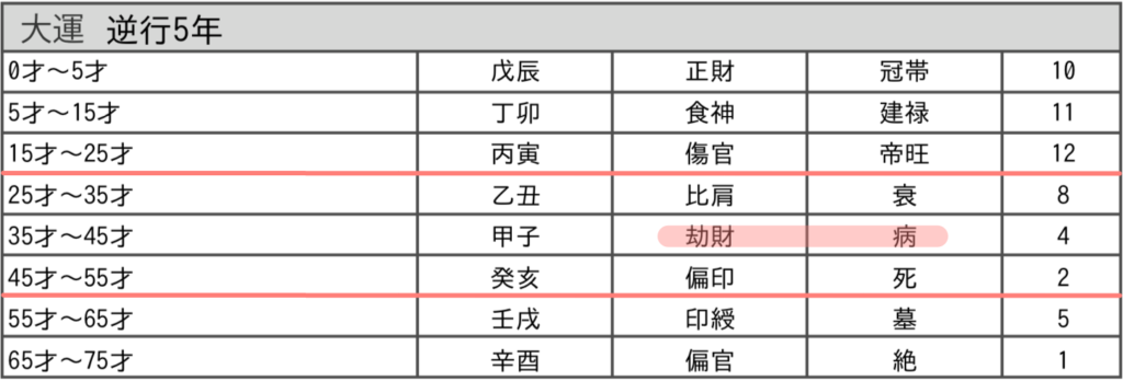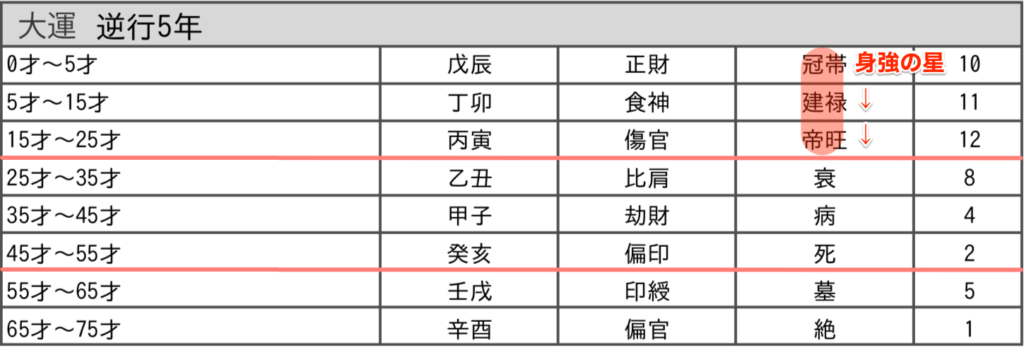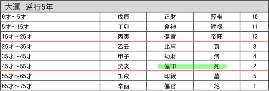 つづいて次の大運のについて読んでいきます(45歳前後〜55歳)。