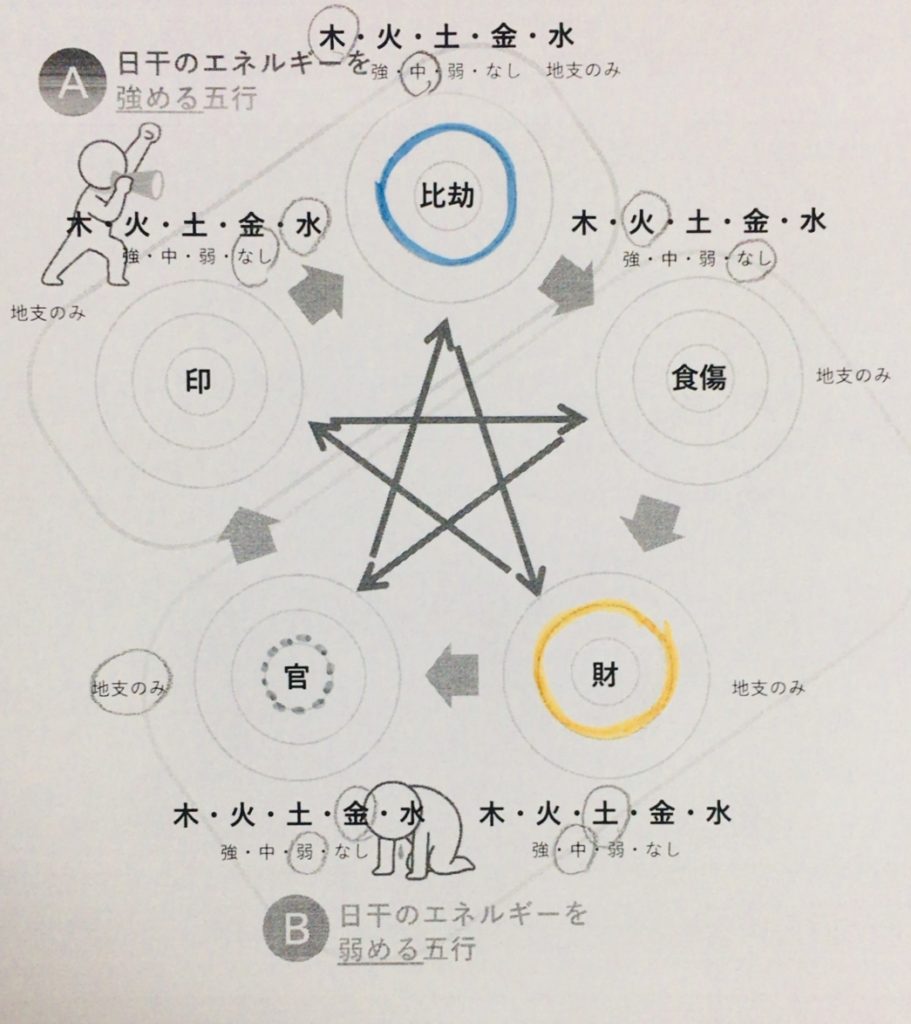 ひろさんの五行バランスの【食傷】ならびに【印】には星がありません。