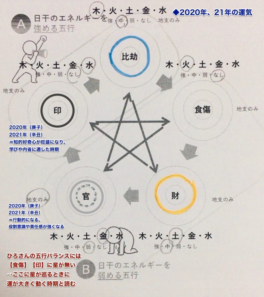 この2年間、ひろさんの五行バランスでは、金の五行【官】と、水の五行【印】に影響が出ます。