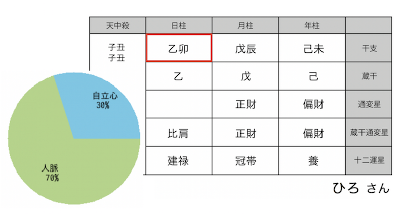 ひろさんの社会運は、超絶パワフルな運気が巡っていました。理由は身強の星が巡っていたから。