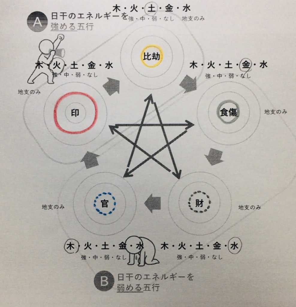 - 印星突出タイプ:アタマの中で考え過ぎて悩みを作り出してしまう傾向が強い