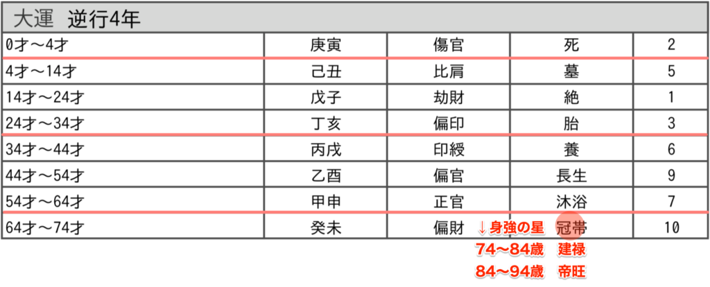 現在の大運について(44〜54歳前後)読んでいきましょう。