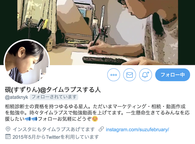 以前は顔を出さずにTwitterをしていましたが、去年の夏くらいからアイコンも自分の顔にして、タイムラプスで勉強動画をアップするようになりました。