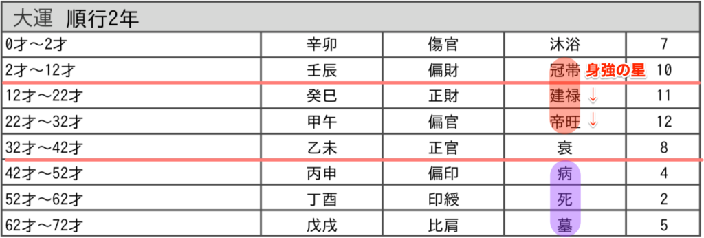 社会運を示す大運(だいうん / たいうん)で見ていきます。