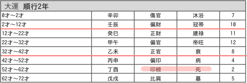 まずは現在の大運について(52〜62歳前後)について詳しく読んでいきましょう。