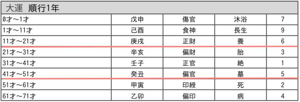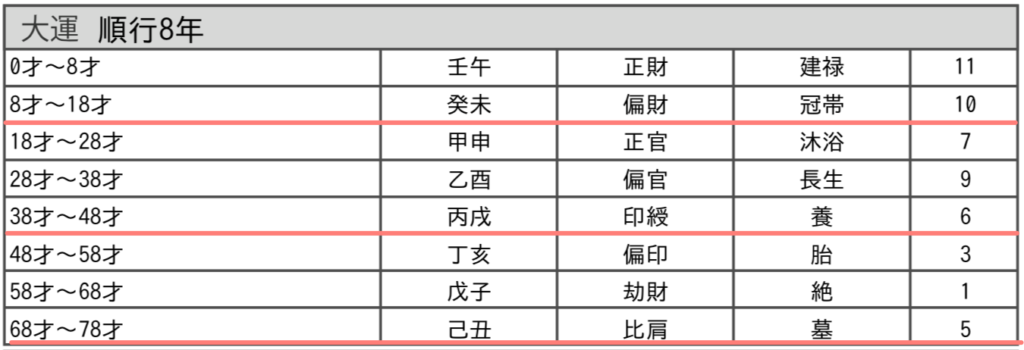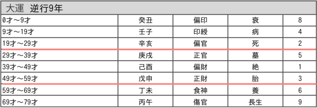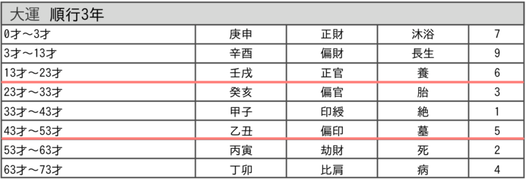 命式と推命パラメーターは、鳥海流・推命NAVIというシステムで出しており、推命パラメーターは3柱(年柱、月柱、日柱)の通変5種の独自の指標で作成しています。