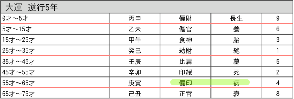 上でも書きましたが、社会運を示す大運が55歳から切り替わります。