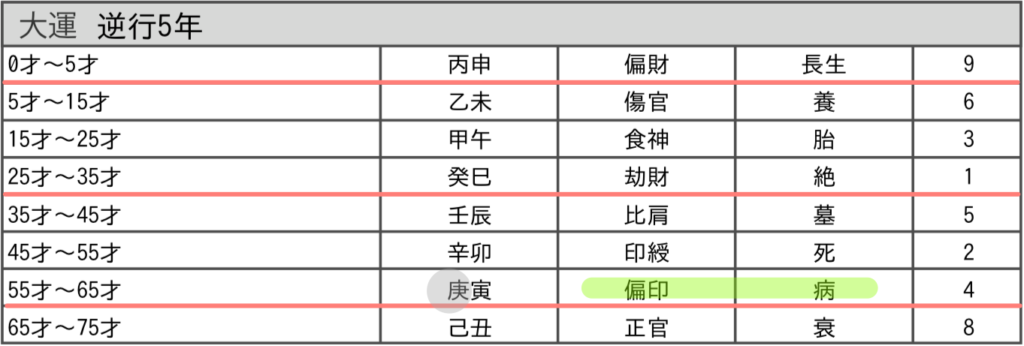 大運(55〜65歳)のテーマは、【偏印 / 病】で読んでいきます。