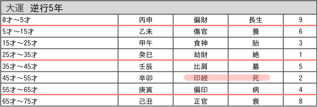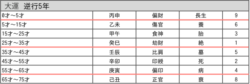 大運は10年周期の社会運です。社会運やキャリア運を読みます。