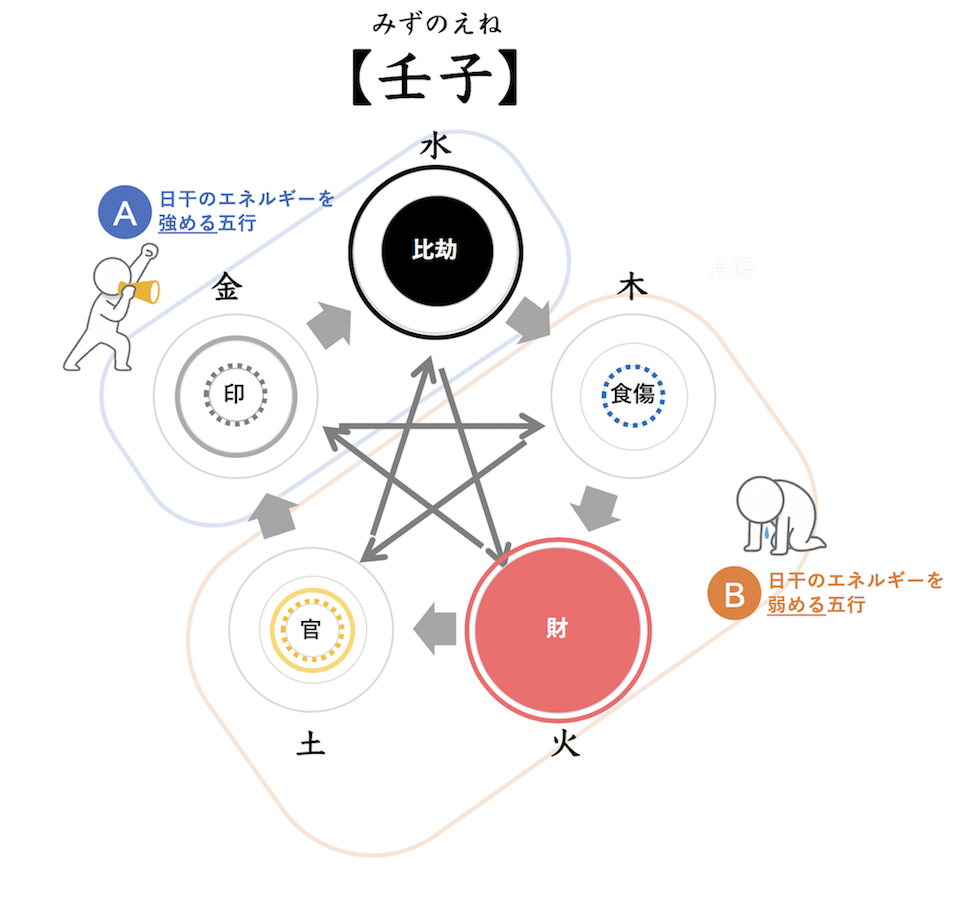 あきちゃんが自分自身をとらえる際、日干支【壬】【壬子】、五行バランスの比劫 / 財星突出タイプを大切にされてください。