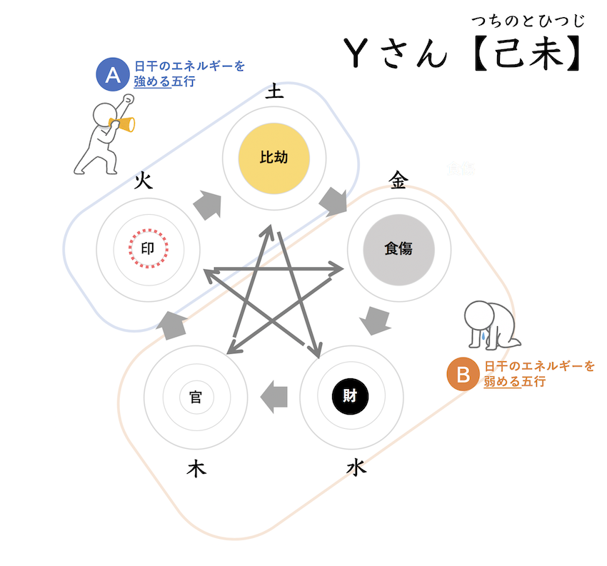 夫婦鑑定で、Yさんと妻の五行バランスの影響を見ました。