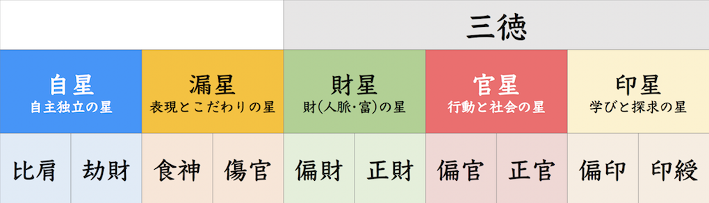 三徳とは、財星、官星、印星、これら3つが、命式の中に最低1つ以上あることをいいます。