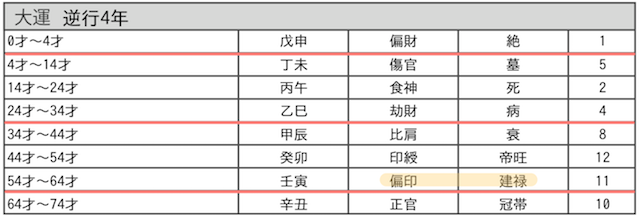 54歳から大運【印】の時代はどんな運気が巡っているのでしょう?