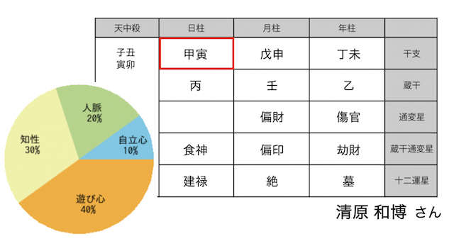 こちらが清原和博さんの命式と通変星のパラメーターです。
