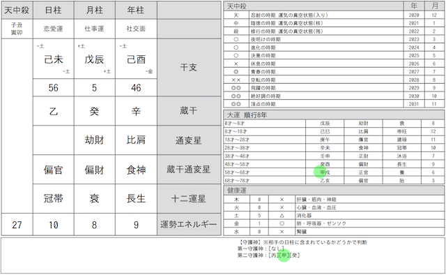 亜希さんの命式の運勢エネルギーは27で、とても強い命式の持ち主であることがわかります(平均は18前後)