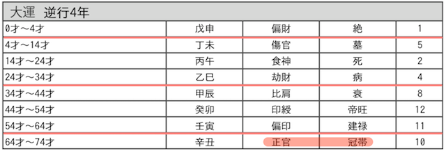 ③ 58歳〜68歳に巡る【正官】=〝夫〟を意味する星