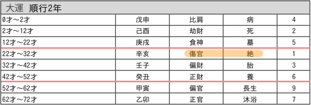 こちらが三浦春馬さんの命式と通変星のパラメーターです。