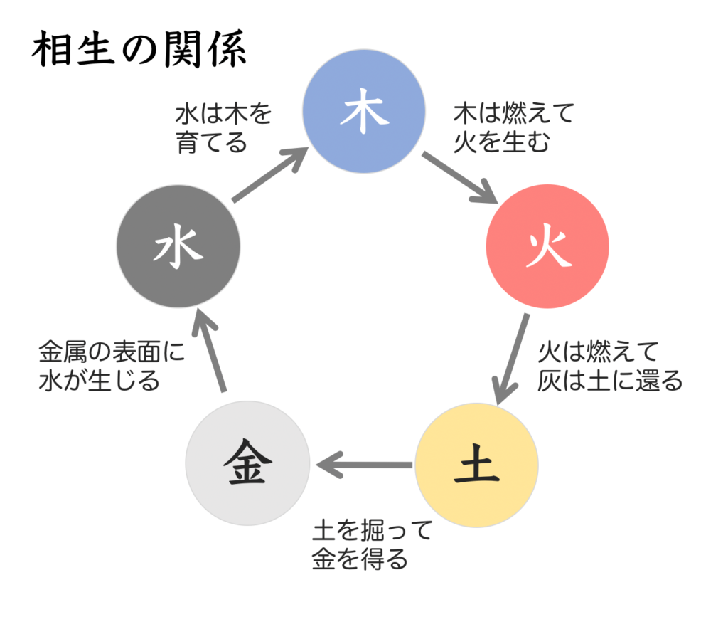 一般的に、相性が良いのは 相生 (そうしょう) の関係 になります。