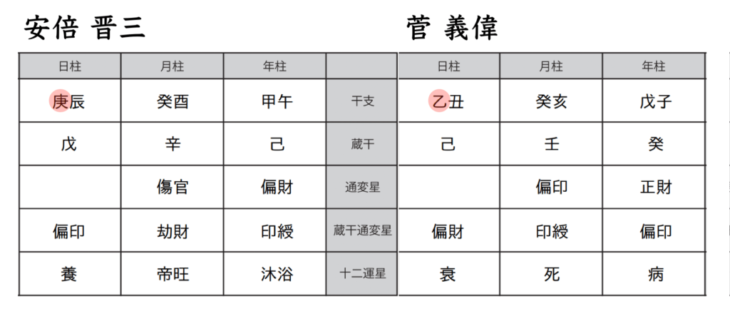 日柱 干合|安倍晋三さん & 菅義偉さん