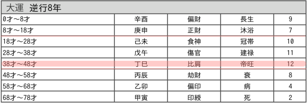 現在の大運干支は【丁巳 ひのとみ】。