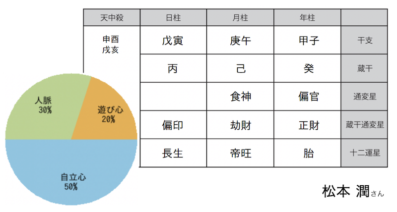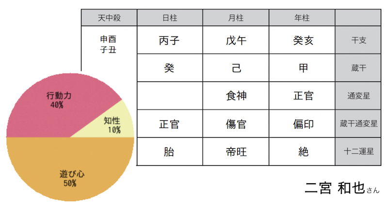 【劫財】には「自己本位」という意味もあるように、自立心旺盛な星でありながら組織感覚も優れています。