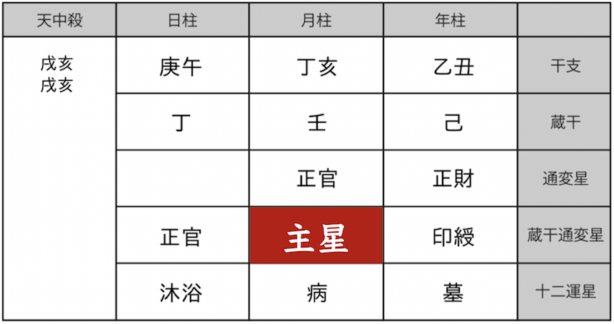 命式で運気の特長や、運気の勢いを読む場合は、この十二運星と通変星の組み合わせで読んでいきます。